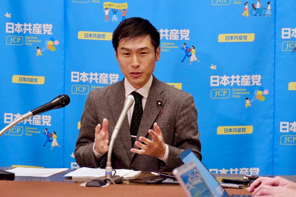 日本共産党の参議院議員として活動する山添拓氏。