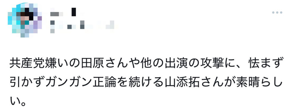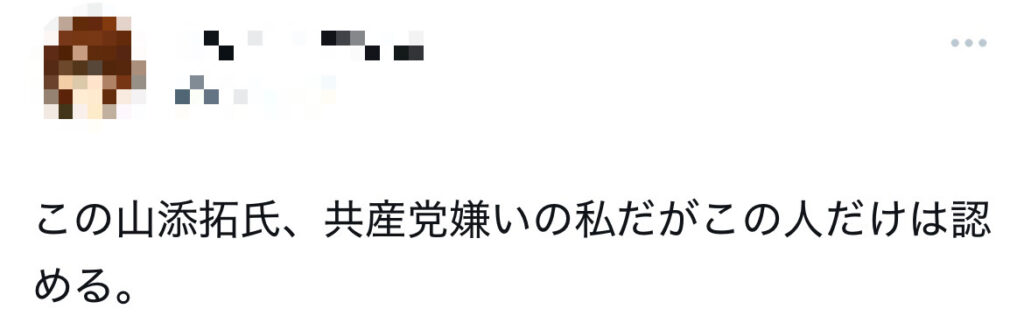 また、「共産党は嫌いだが山添拓氏は評価している」というように、党とは切り分けて評価する意見もあります。